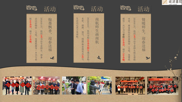 9.2021年1月12日,协助举办德州扑克游戏 定制版“迎春送福”活动,组织15名书法专业师生、校友拟定春联内容,准备三校区所需物资(毛毡、笔墨纸砚等)共计书写春联600余对,福字1400余幅。
