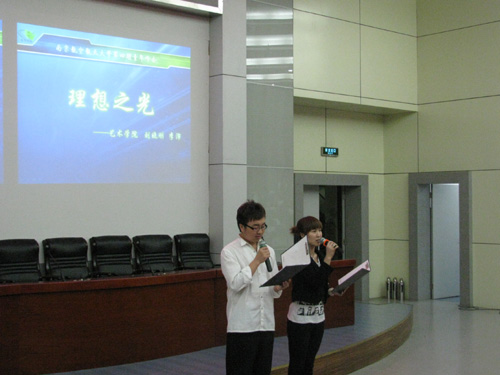 在此次峰会进行的过程中,德州扑克游戏 07级音乐表演(歌舞)专业学生刘晓刚、李沛进行了题为《理想之光》的诗文朗诵,与肖珊的演讲相辅相成。