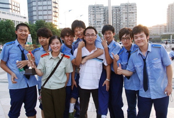 的同学为准备此次参赛,勤恳排练,不畏辛苦,在比赛现场,军姿飒爽,甚为称赞。