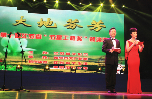 “五星工程奖”评选由江苏省文化厅主办,是我省群众文化艺术政府最高奖,每两年评选一次,旨在选拔和鼓励创作贴近生活、贴近实际、思想性与艺术性统一、广受群众喜爱的文化艺术作品。本届“五星工程奖”共收到全省各地选送的舞台艺术类作品304件,经专家评选,舞蹈《春芽儿》等作品脱颖而已。江苏省领导王燕文、张艳、曹卫星、周珉等出席了颁奖晚会晚会并为获奖单位颁奖。