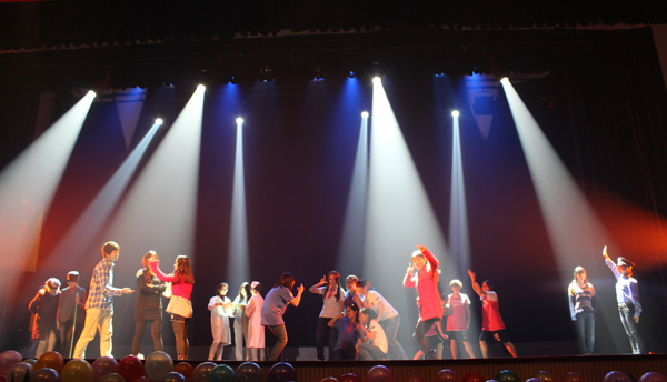 2012级新生辅导员庞剑介绍,晚会现场共设置了挚友情深‘同桌的你’区、亲朋好友‘相亲相爱’区、情侣专属‘因为爱情’区、相依相伴‘一生有你’区、贵宾特权‘神秘嘉宾’区和单身贵族‘单身情歌’区等六个观众区域,相应的门票也分为六款,十二种不同的颜色。“我们一共印刷了600多张门票,面向全校师生免费发放,这六款门票的名字来源于六首歌曲名,每张门票上还有相应的歌词,我们想以这种方式让大家感怀过去的时光,也让观众有参与感。”