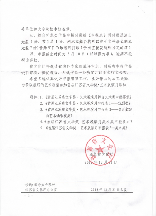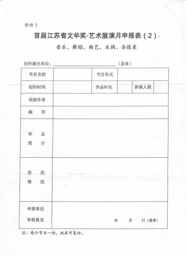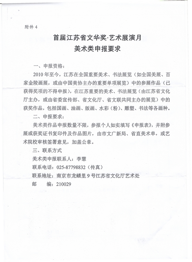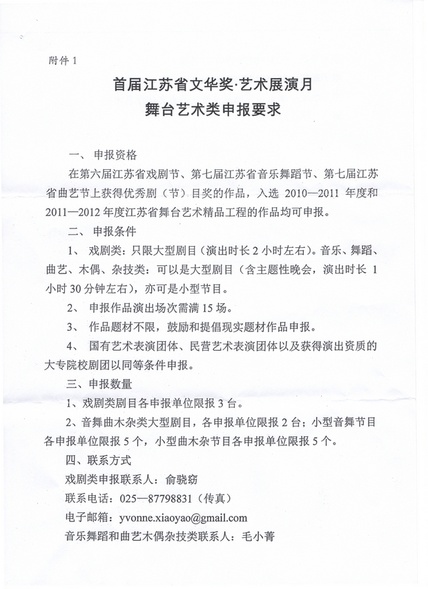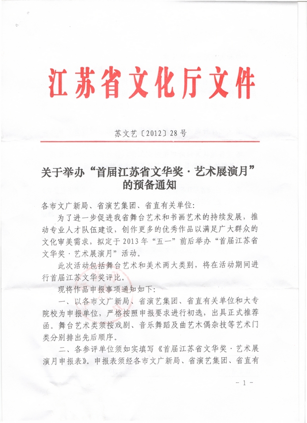 关于举办“首届江苏省文华奖・艺术展演月”的预备通知