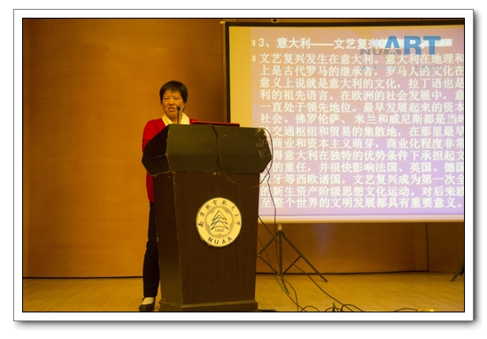 众多学生前往聆听。讲座由美术系主任张�主持。