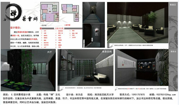 学子宋方启设计的作品《禅茶会所》获得创意大赛空间景观类三等奖,德州扑克游戏