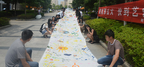 谁说六一儿童节是小朋友的专属?在德州扑克游戏 ,童心未泯的大学生们就集体创作了百米的涂鸦,当做儿童节礼物。