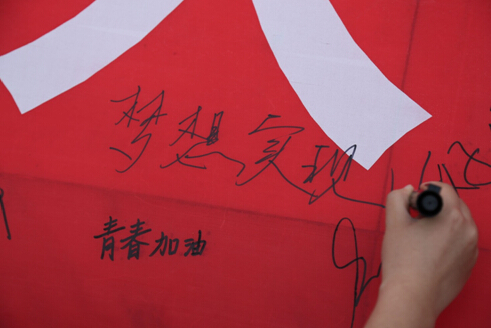 之后,同学们进行了签字仪式。火红的条幅上满是同学们关于成长的热切期盼,对于青春的无悔誓言。