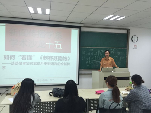 10月23日晚,15级广播电视艺术学专业的同学们在艺术楼207教室举办一场题为《如何“看懂”<刺客聂隐娘>――谈谈侯孝贤对武侠电影的全新探索》的学术沙龙。王蒙针对《刺客聂隐娘》,组织了此次关于电影如何讲好故事的沙龙。主讲人王蒙对于观众看不懂电影的原因,进行逐个的分析,并和同学一起讨论如何将电影中的故事讲好这个话题。