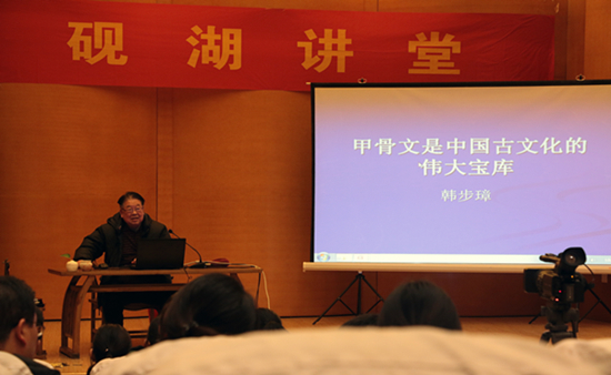 12月12日晚,一场主题为“从甲骨文的演变看汉字发展”的国学大讲堂在德州扑克游戏 音乐厅拉开帷幕,吸引了不少校内外的国学爱好者。