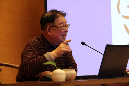主讲人是八十高龄的韩步璋教授,从事书法研究三十多年,对于甲骨文方面的研究也取得了许多成就。耄耋之年的长者,对于书画的喜爱从他的一颦一笑中、行为举止中、言语交谈中,自然而生。本次讲座的内容主要分为两个部分,首先是对于甲骨文的讲解,这主要是从象形和会意两方面入手;然后是现场猜字活动,韩教授写了十多幅甲骨文作品,观众根据之前讲座所学的知识,现学现用。