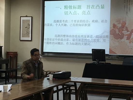 作为几项国家社科项目的主持和参与者,陈堂发教授对于项目申报有着自己独特的感受。就“如何做出一份出色的项目申报书”问题,陈教授从申报人、评阅人的双重视角出发,从项目标题、文献综述、语言表述等五个方面进行了生动而详细的讲解。谈到题目的重要性时,陈教授说到:“一个好的项目题目必须能够体现实质性内容,要有问题意识。题目能够显示的研究对象越明确、越具体,申报书的质量就越高。评审专家往往是‘身经百战’的,他们一看你的题目就能了解项目是否可以进行深度挖掘。因为好的题目具有可预见的生长性。”而在“主要内容”与“章节框架”之间关系方面,陈教授也给出了自己的独到见解。他说:“作为章节框架的核心部分文字描述,主要内容重在‘掐头去尾’,简洁明了、直奔主题的描述最为稳妥。”