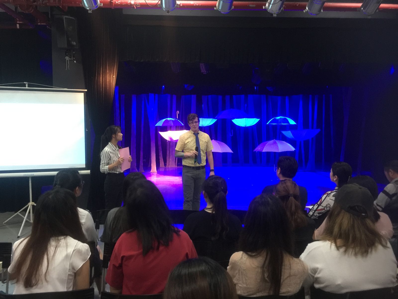 “9把伞,5段音乐,如何用灯光来表达叙述五段故事?”来自西雅图的中央华盛顿大学的Joshua Legate老师的《戏剧灯光》课程结课show“The light in heart”让人耳目一新。戏剧影视美术设计的同学用光影的变幻阐述对于音乐的理解,每组灯光设计都是一个小世界,有着不同的叙事主线及希望表达的价值和情感。这种灯光的设计表达已然超越其照明的物理属性或者配合其他艺术表现形式的辅助属性。光影的呈现成为了主角,一个富有生命张力的主体,它吸引了所有人的目光,随着色调、明暗以及组合的变化而心潮起伏。这样的呈现方式也是这门课程的要义所在,设计表达应该有灵魂、有思想,有着对于人、社会以及世界的理解与关切。