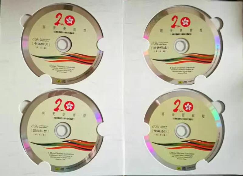 日前,为庆祝香港回归20周年,由中国唱片总公司出版发行了中共中央宣传部、国家新闻出版广电总局2017年主题出版重点出版物“十三五”国家重点音像出版规划项目《明天更辉煌——庆祝香港回归20周年音乐精品集》(6CD)。专辑按作品内容分为“香江明月”、“回归礼赞”、“共铸辉煌”、“情融香江”、“九州锦绣”、“普天同庆”六个篇章,其中,前三章为声乐篇(45首)、后三章为器乐篇(13首)。