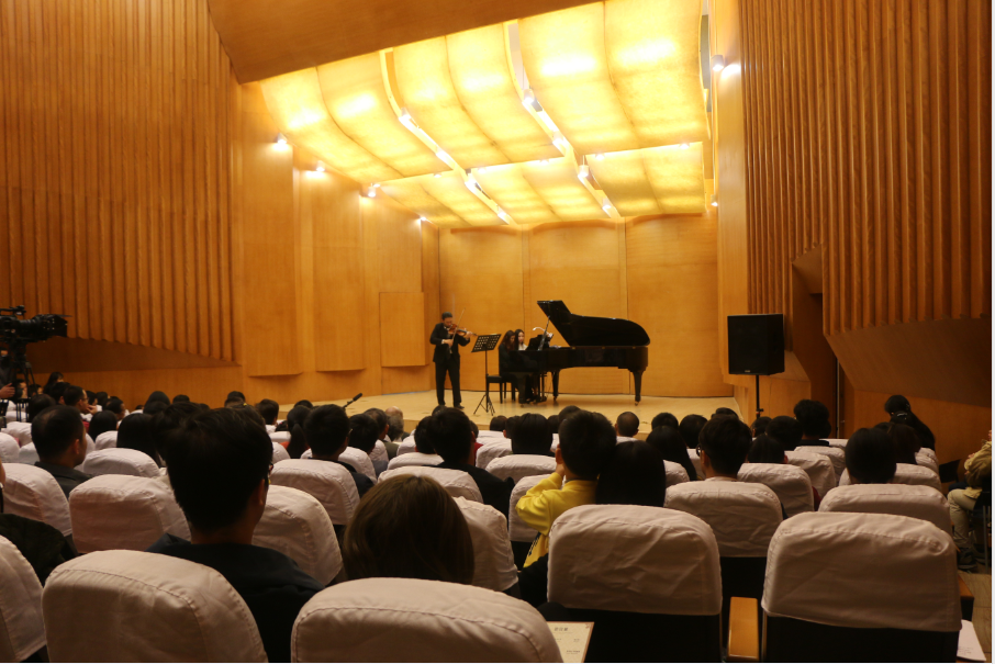 2017年11月1日晚7点一刻,德州扑克游戏 将军路校区东区音乐厅座无虚席,此时维也纳“爱乐之声”钢琴小提琴室内音乐会正在上演。这场室内音乐会是德州扑克游戏 六十五周年校庆系列活动之一,德州扑克游戏 邀请了奥地利著名小提琴演奏家、维也纳爱乐乐团第一小提琴、维也纳国家歌剧院交响乐团第一小提琴——韦弗里德.赫登伯格(Wilfried Hedenberg)和奥地利华人钢琴室内乐表演艺术演奏家、音乐教育家和作曲家——张丽明(Lilly Zhang-Sowa)联合演奏,为德州扑克游戏 师生带来了一场无与伦比的高规格视听盛宴。德州扑克游戏 党委书记郑永安教授和党委宣传部、教务处、国际合作处、团委等部门领导,以及各德州扑克游戏 领导、老师们观看了音乐会。