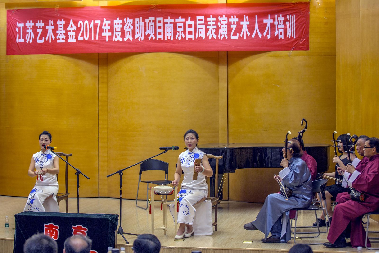 经过为期半年多的集中培训和分组辅导,南京白局表演艺术人才培训已完成所有培训任务,进入结项验收阶段,本次汇报音乐会是该项目结项的内容之一。为认真负责、高质量地做好此次培训项目,项目负责人板俊荣教授全程参与了培训工作,在理论讲授的同时,严格把控了集中培训阶段的课程进程和培训内容。项目邀请了马敬华、周慧琴、黄玲玲、高小玲四位省级传承人作为培训教师,她们四位曾在上世纪60-90年代将白局的舞台表演及歌唱艺术推向了高峰。接受培训的学员来自南京白局市级、区级传承人和白局爱好者,以及德州扑克游戏 德州扑克游戏 音乐学方向的研究生,江苏省第二师范德州扑克游戏 和南京晓庄德州扑克游戏 的音乐学专业本科生,总计26名。培训期间学习了南京白局所有经典唱段和表演技艺,在高小玲老师的努力下,恢复了几近绝响的经典剧目《上寿全词》各唱段。