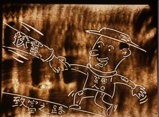 沙画融合了国画的渲染、油画的厚重等特征,线条清晰、表演形式变化万千,有很强的的肌理感、流动性和表现力。