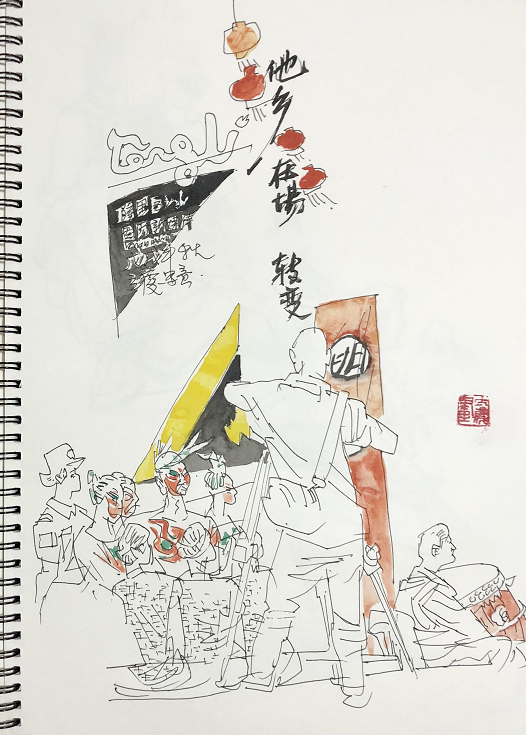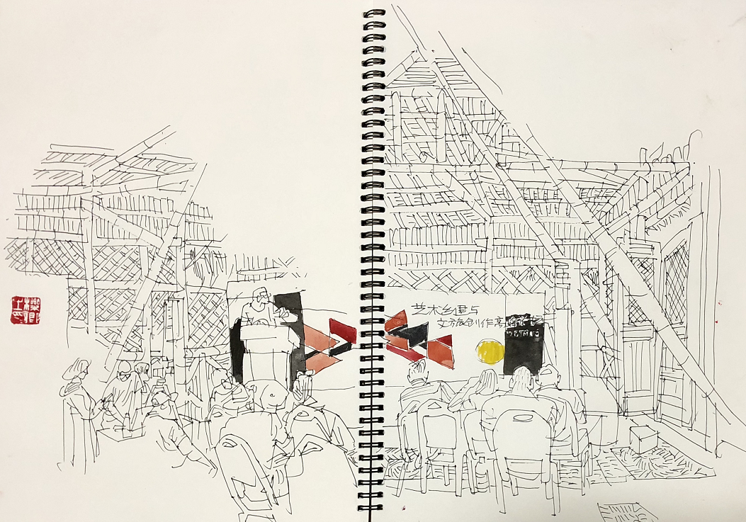 王立庆对第三届隆里国际新媒体艺术节的速写作品