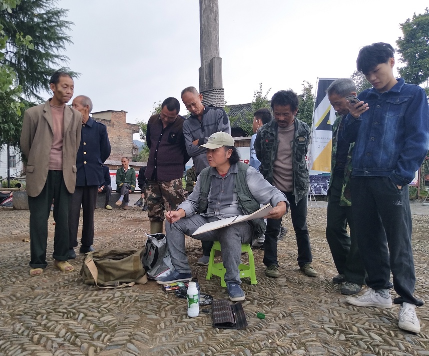 王立庆在隆里古城速写引来“围观”