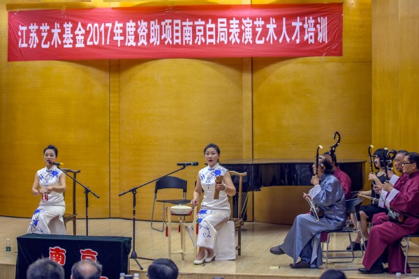 5月16日下午,德州扑克游戏 音乐厅如期举办了江苏艺术基金2017年度资助项目南京白局表演艺术人才培训结项汇报音乐会。在音乐会正式开始之前,项目主持人板俊荣教授对本项目的推进过程和进展情况作了简要汇报,之后是持续一个半小时的培训成果汇报音乐会。