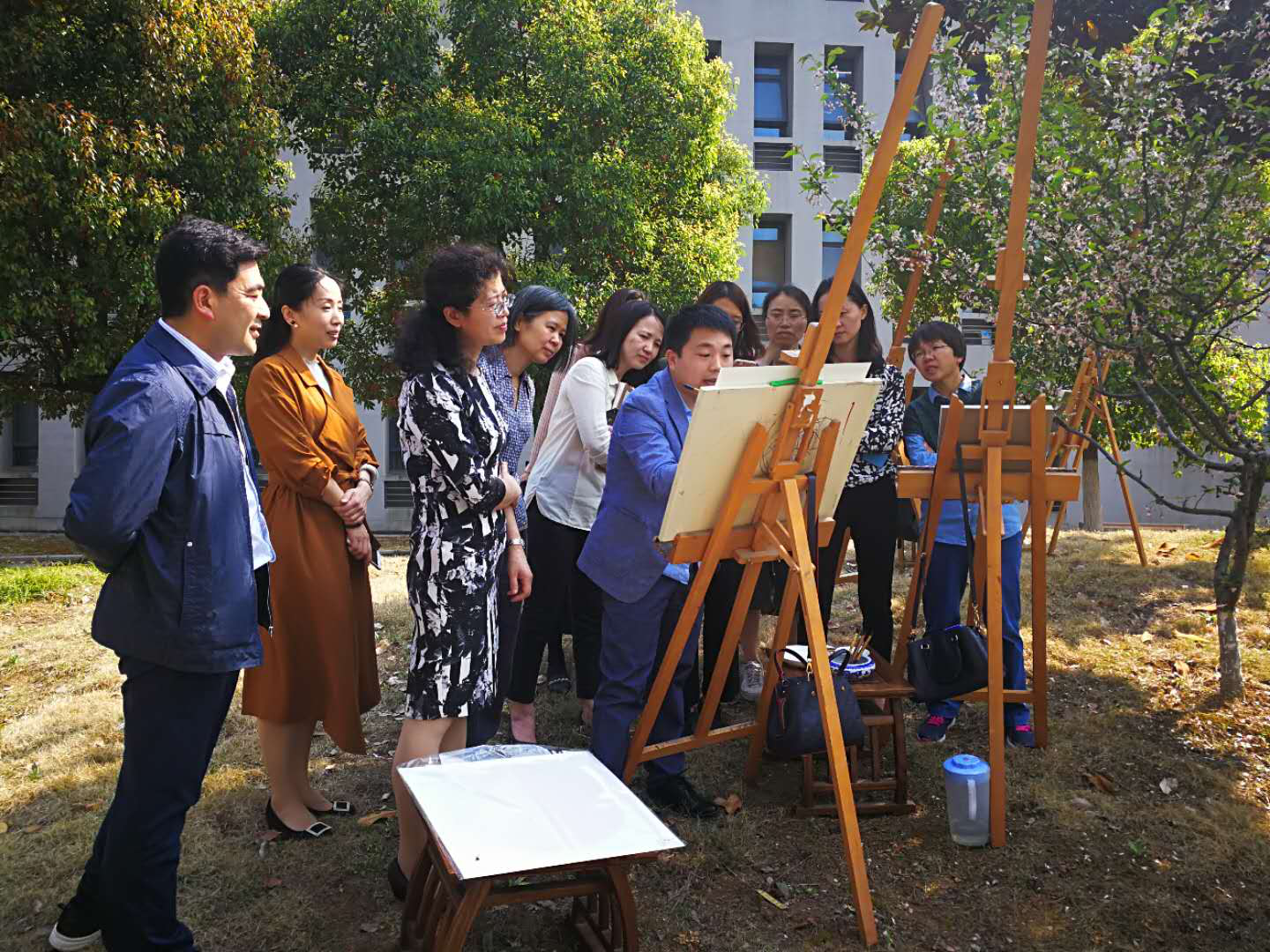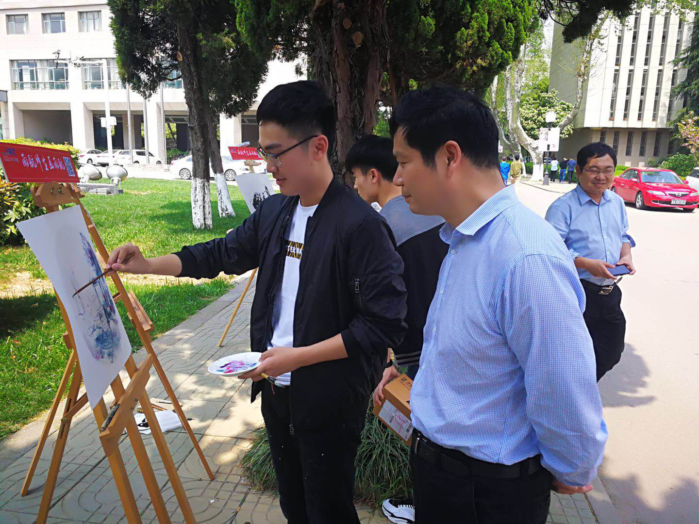 4月2、3、4日,德州扑克游戏 在明故宫校区和将军路校区开展了“德州扑克游戏 师生画德州扑克游戏 ”写生体验活动,德州扑克游戏 王立庆教授、熊炜教授、张春华副教授等专业老师和学生积极参加活动并到现场作画和指导。小小的体验引来了众多师生的参加,也吸引了无数的德州扑克游戏 师生驻足观看,据不完全统计,三天在现场体验的师生数共计70余人。有很多参加体验的师生都是本着试试看的心情来到现场拿起画笔,没想到体验结束完成了自己的第一份画作,特别有成就感和自豪感。