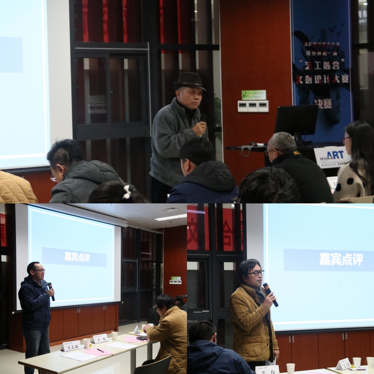 答辩结束后,由三位老师分别对各类别的作品表现做出点评。机电德州扑克游戏 工业设计专业教师吴讯对平面设计类和文创实物类的作品进行点评,他表示这次比赛让他有很多收获,他看到各专业的同学勇于创新,融合艺工的精神,他说“蓝龙flying团队的磁悬浮技术,能够基于反扭矩实现360度自转,这就是一种创新的想法”。在对数字多媒体类作品的点评中,德州扑克游戏 广播电视学专业教师吴志斌表示,三组作品的设计都给他留下很深的印象,也存在一定的提升空间,希望同学们能够通过本次比赛带来视频制作方面的突破。最后,国家一级舞美师、德州扑克游戏 美术专业教师王立庆对舞美设计类的作品进行点评,他表示“做出一个完整的舞美设计作品,需要耗费大量的时间和精力,尤其PM2.5十佳歌手的作品,在全面性方面做得特别好。”