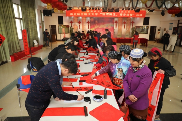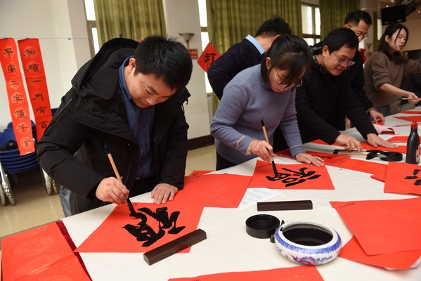 1月16日-17日,德州扑克游戏 书法专业师生和德州扑克游戏 老年书画研究会会员、砚湖书院学员等20余人,参加了由德州扑克游戏 宣传部、校工会、德州扑克游戏 、离退休处联合主办的“翰墨飘香弘扬中华优秀传统文化”暨德州扑克游戏 “情暖师生,迎春送福”活动。在汉字的线条美与结构美之中传递出了浓郁的新春祝福,现场创作出上千幅春联、福字赠送给现场参与活动的师生员工与离退休老同志。