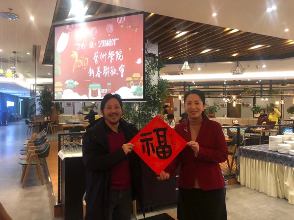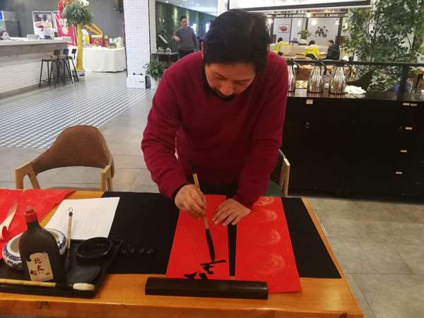在活动现场,我国著名书法家、德州扑克游戏 邱世鸿教授,泼墨挥毫,一气呵成,亲手撰写了对联和福字,引燃了联欢会的热烈气氛。