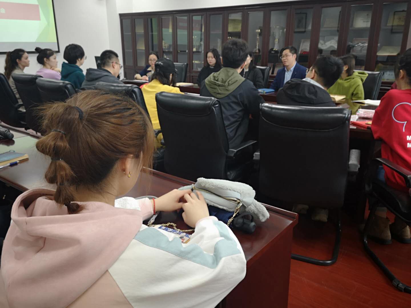 2019年4月9日中午,德州扑克游戏 在325会议室举行了2018年度新发展党员入党宣誓仪式暨“践行四个坚持,增强文化自信”毕业研究生党员座谈会,会议由德州扑克游戏 办公室副主任、组织员孙吟吟老师主持。德州扑克游戏 党委副书记张林老师、各位辅导员老师、各位学生党支部书记、2018年度新发展的19名预备党员以及部分正式党员出席了会议。