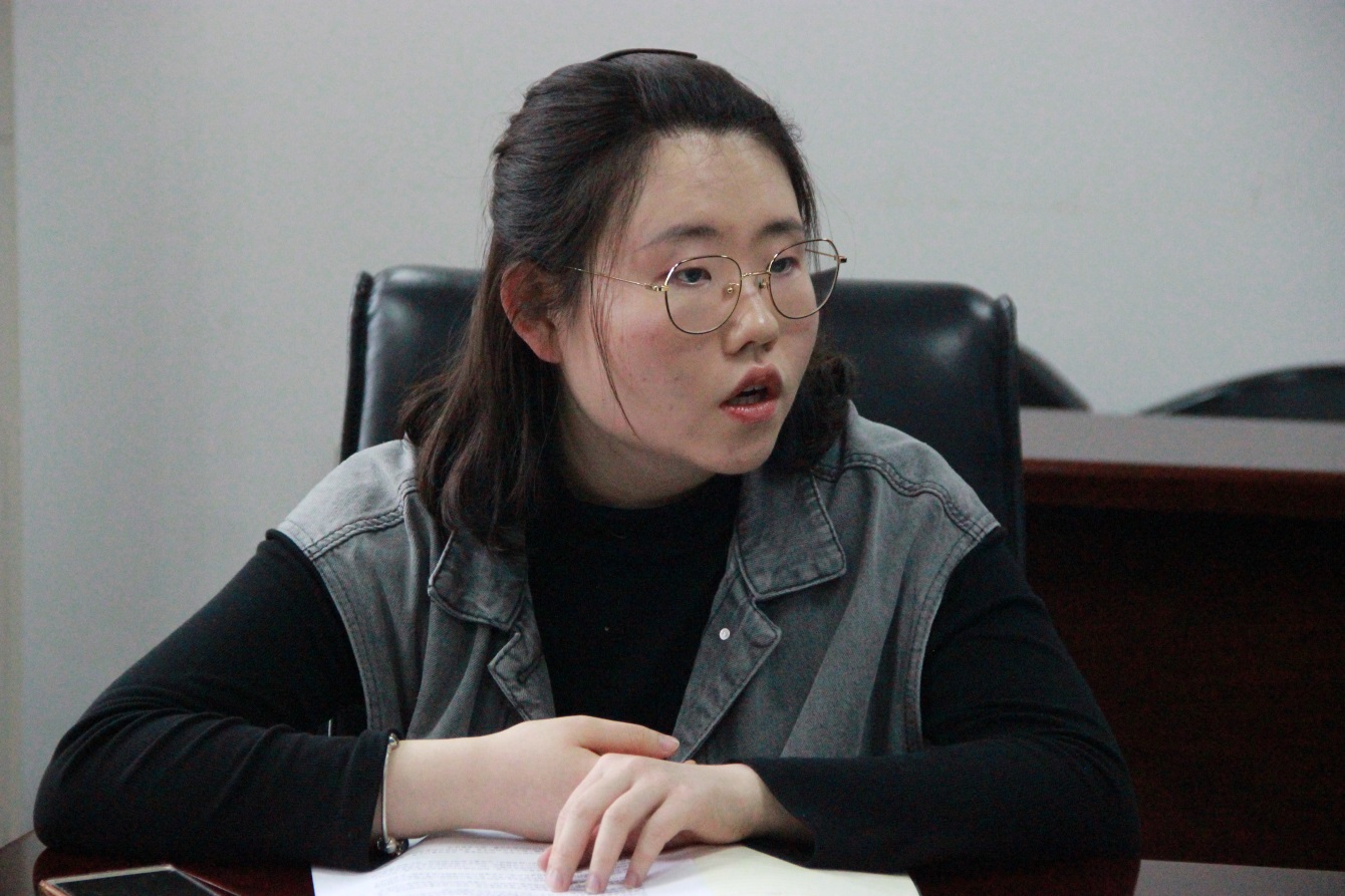 座谈会开始,同学们首先观看了由“艺笔意画学习小组”制作的手绘视频《五四运动百年历史回顾》,接下来,同学们结合学习情况和工作实际进行座谈。很多同学总结了自己工作中的重点和难点,并将自己的工作经验进行交流,也有同学结合五四百年的重大契机计划开展的支部活动进行了分享。1116201班的团支书连昭馨结合自己对五四精神的学习和两年多的团支书工作经验进行分享,她说:团支书的工作要依靠青年团员,所以我们要主动融入其中,多为同学们办实事、办好事,这样才能真正成为同学们信赖和认可的团干部。