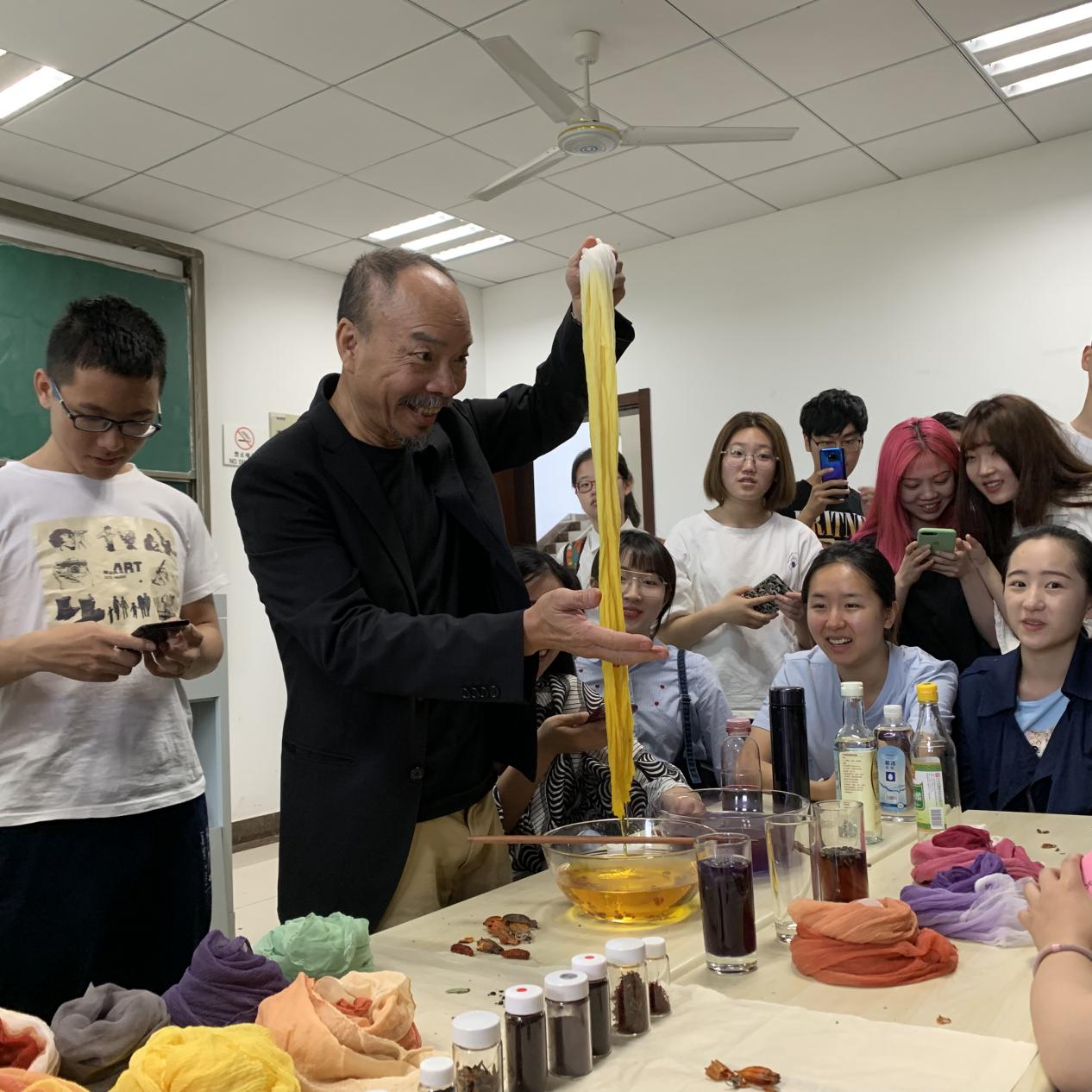 ,为师生们做了一场声情并茂、理论与实践相结合的讲座,让大家领略到中国传统色彩与染色的魅力。