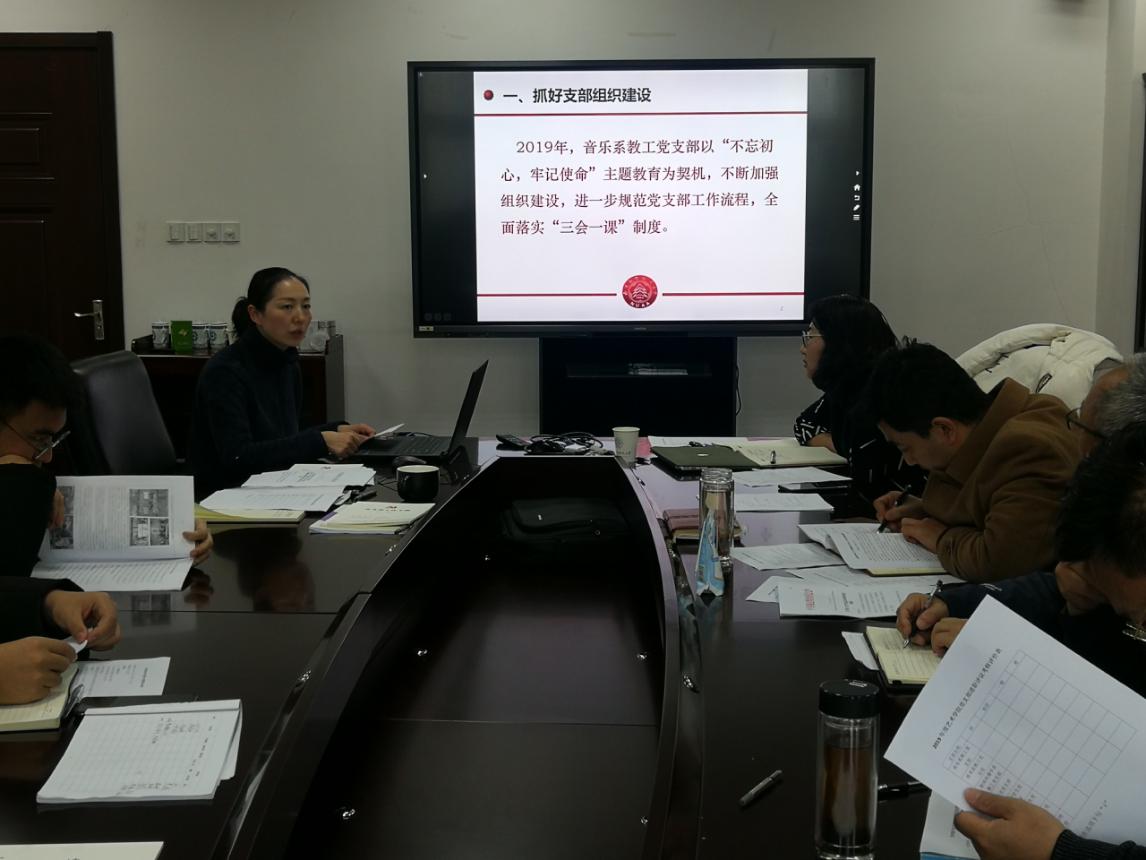 8位党支部书记紧扣《中国共产党支部工作条例(试行)》所规定的基层支部八个方面基本任务,以PPT汇报的形式,向大会展示了党支部一年来的工作及开展“不忘初心、牢记使命”主题教育的情况、主要成绩、存在的不足和整改举措、以及下一阶段工作计划等,既总结经验又剖析不足,既有把自己和工作摆进去的严肃认真,又有持续改进提高的自觉。教工党支部深入开展了对习近平总书记关于文艺工作的重要论述、意识形态工作、师德师风建设等方面的专题学习;学生党支部研究制定了党员学导工作制度,搭建学生党员联系群众的育人实践平台,并按照学科专业设置纵向党支部,实现教工党支部和学生党支部的专业对接,以师生从游推动党建育人、共同成长。党员师生为德州扑克游戏 庆祝新中国成立70周年大合唱担任指导、为“笔墨丹心”书画作品展提供作品,保障了活动的顺利进行,在服务和奉献中发挥党支部的引领作用与党员先锋模范作用,促进党建工作与中心工作相融合。党员干部在《红旗文稿》《江苏高教》发表党建理论文章4篇,1项全国党建项目结项,1项党建研究项目获德州扑克游戏 立项,1个党课获校党课比赛二等奖,1本记录本获评校“最美笔记”,1篇访谈被“学习强国”平台登载,“不忘初心、牢记使命”主题作品被德州扑克游戏 党委推荐至江苏省委组织部。