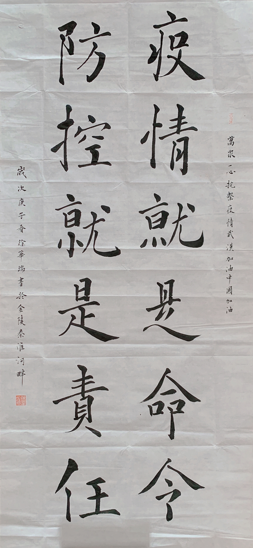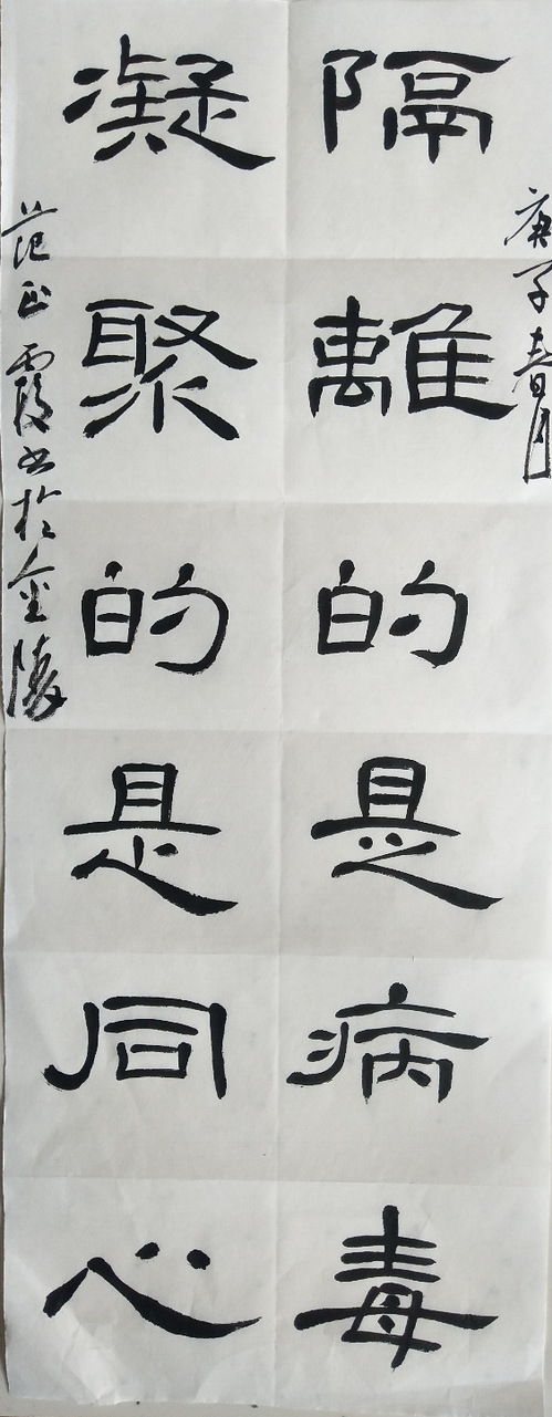 作品名称:楷书《万众一心 抗击疫情》