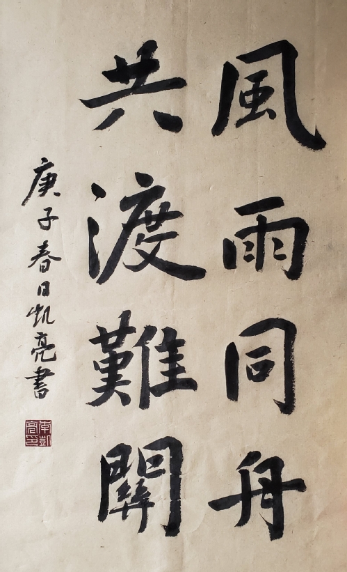 作品名称:行书《风雨同舟 共渡难关》