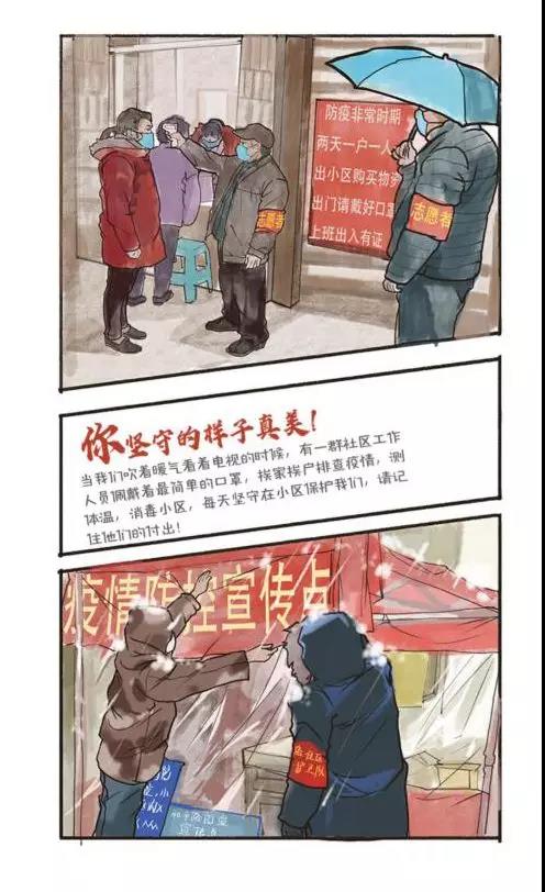 吴云玲,戏剧影视美术设计专业 2017级本科生,创作心得:“他们是榜样,为这焦虑悲伤的环境添了一勺糖。我作为一个安徽人,看到那么多老乡在默默付出,很受感动,想尽自己的努力,把这个作品做到最好!在一次次的创作中,我的绘画技巧也得到了提升。在组织画面的时候,会从一些优秀的作品中学习配色和画面的设计。”