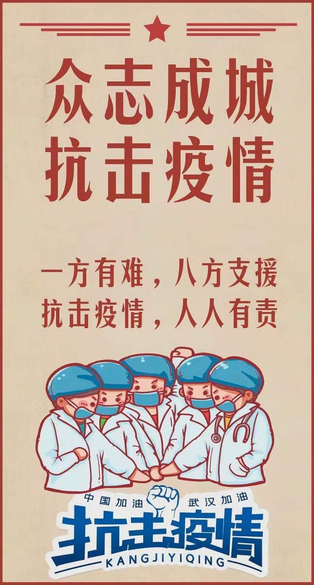 《众志成城 抗击“疫”情》 设计者:19级研究生 秦晗 入党积极分子