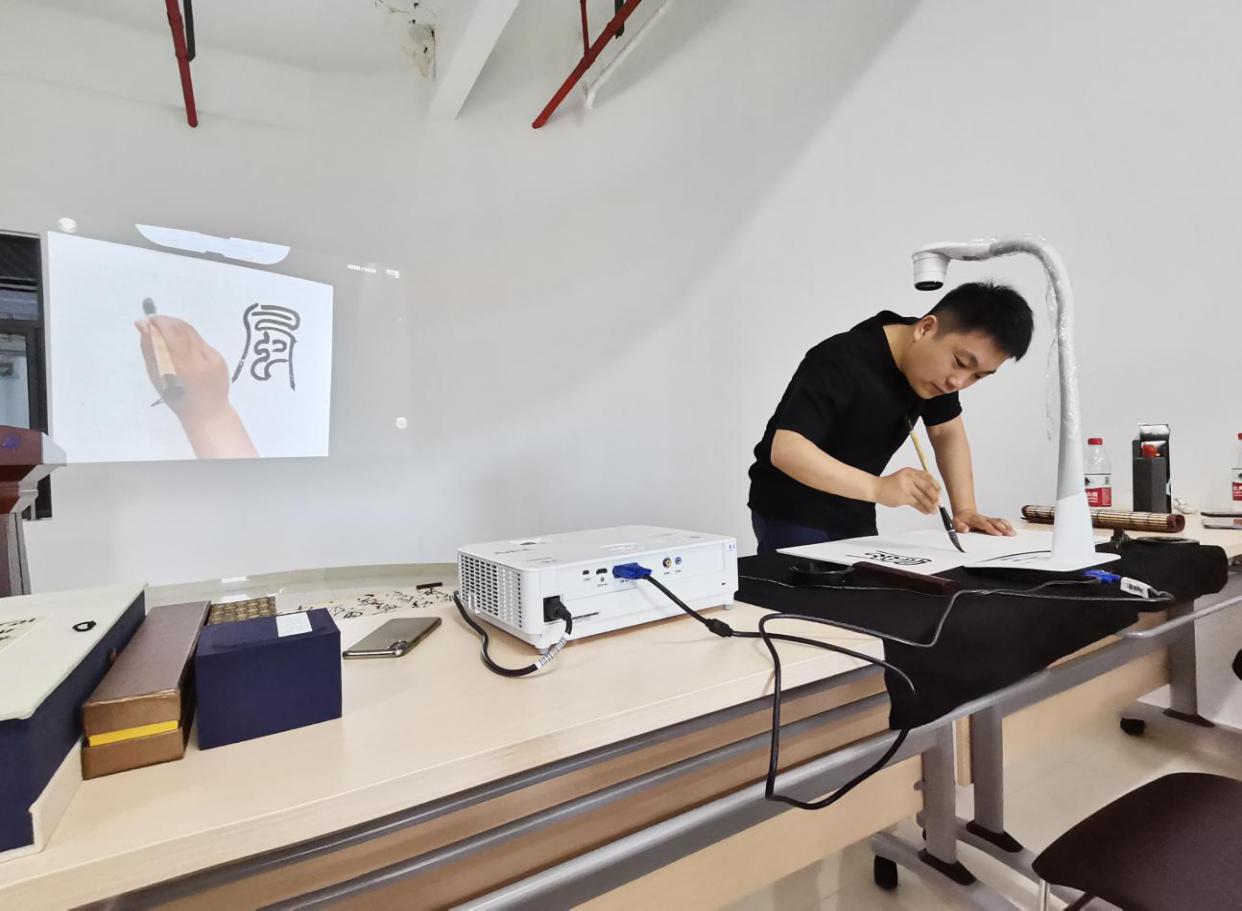 开班仪式后,德州扑克游戏 青年教师郭洪豹带来了一堂精彩的书法课。首先他梳理了在书法书法基础知识,解答了在书法学习过程中常遇到的问题,同时现场书写演示“篆、隶、草、行、楷”5种字体的发展过程,并深入剖析各种字体的不同特点,带领学员们赏析不同字体书法原作,为学员们选择入门法帖提供了参考。课程的后半部分,郭老师详细讲授了笔墨纸砚的选择技巧以及文房四宝的使用和保养的方法,并在现场挥毫泼墨,直观的展示了书法创作的完整过程。