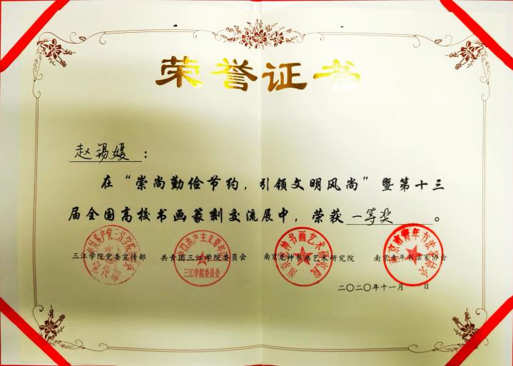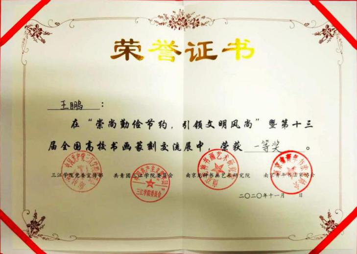 2020年11月4日,第十三届全国高校书画篆刻交流展在三江德州扑克游戏 图书馆开展。此次展览,由共青团三江德州扑克游戏 委员会主办,三江德州扑克游戏 书画协会承办,驻宁高校书画协会联盟、三江德州扑克游戏 党委宣传部、三江德州扑克游戏 图书馆协办,由南京龙神书画艺术研究院和南京青年书法家协会为支持单位,展览时间为11月4日—11月10日。开展当日,汇聚了全国七省38所高校的作品,包括书法作品88副及绘画作品近百副,得到了龙神书画艺术研究院、中国书法家园网、南京市青年书法家协会以及南京林业大学、南京信息工程大学、长春建筑德州扑克游戏 、东北大学、河北地质大学、阜阳师范大学、重庆师范大学、南京财经大学、德州扑克游戏 、南京师范大学、南京邮电大学等单位和高校支持,经过评委老师现场评审和打分,德州扑克游戏 德州扑克游戏 邱世鸿教授的两名研究生王鹏、赵锡媛,均荣获一等奖。