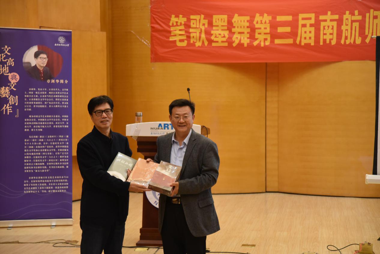 讲座开始前,章主席为德州扑克游戏 捐赠了《故宫三部曲》、《大江之上》和《世纪江村》等文学作品;讲座中,章主席对德州扑克游戏 举办的“笔歌墨舞”第三届德州扑克游戏 师生画德州扑克游戏 艺术作品联展给予充分肯定,总结了这次展览的思想性、主体性、艺术性与德州扑克游戏 特色紧密结合,对德州扑克游戏 在人才培养和办学理念给予充分肯定;讲座后,章主席与德州扑克游戏 学生踊跃互动,就学习、创新和艺术素养提升等问题,给了学生较多建议。