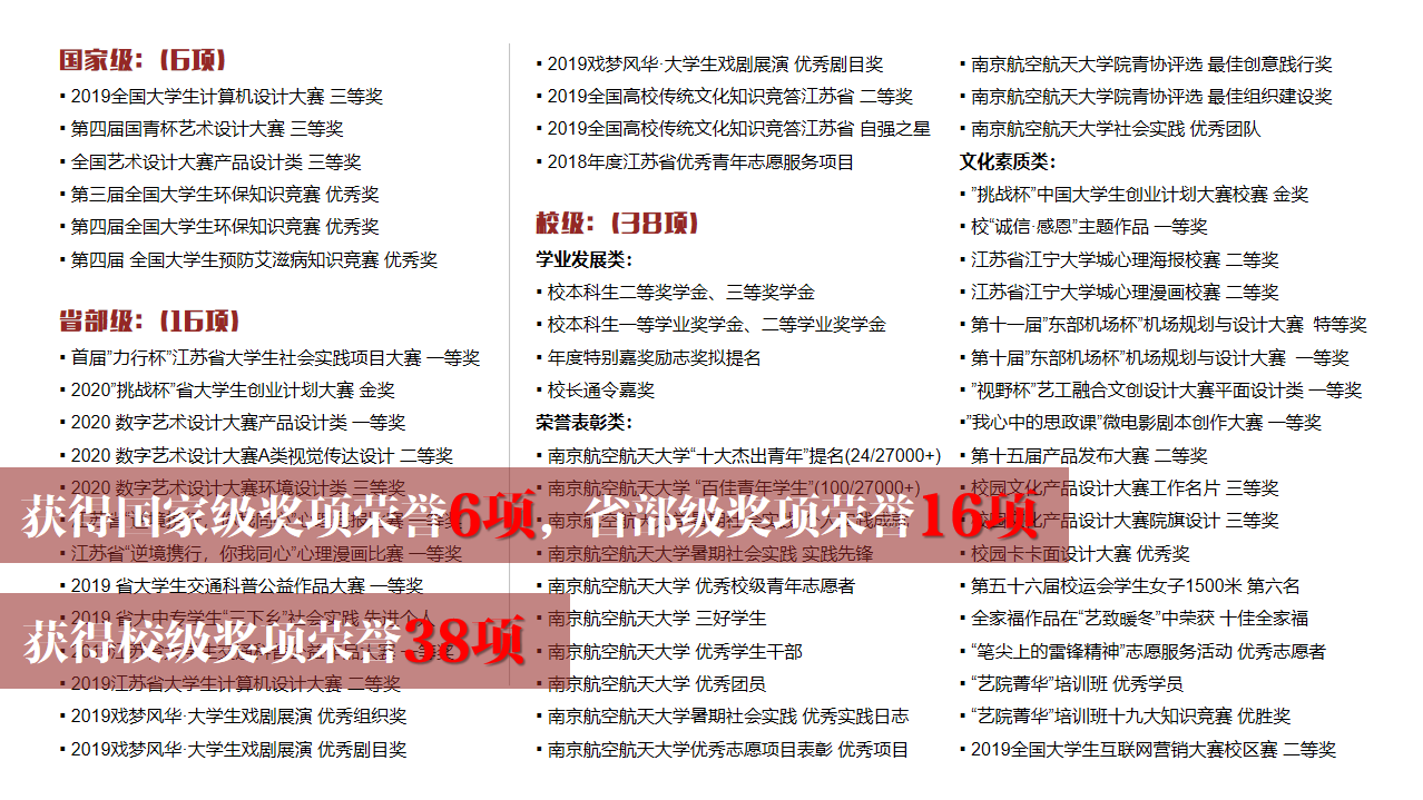 而在坚定的信仰下,专业素质成为了我和画笔的又一个约定。三年来,我不断鞭策自己,用画笔记录下点点滴滴,41门课程90分以上,60多项荣誉奖项,名列前茅的学年绩点让我以专业第一的成绩成功保研本校。