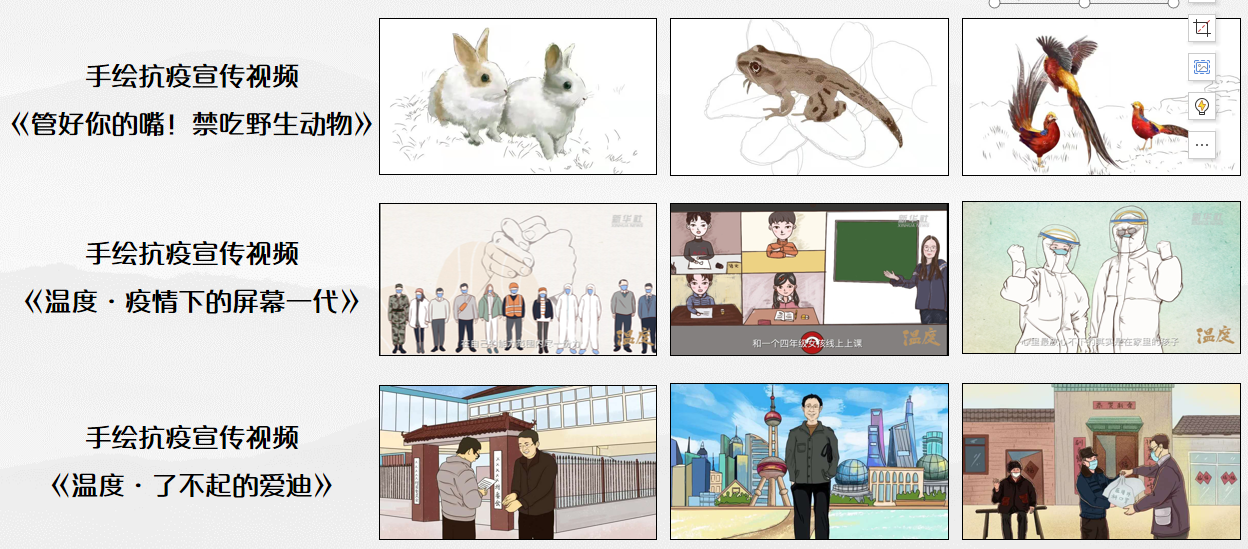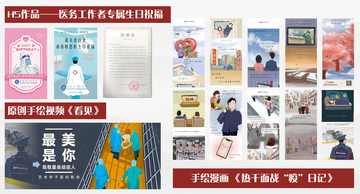在这些作品的宣传号召下,越来越多的同学加入手绘工作室,奔赴在战疫宣传的第一线,绽放着属于我们自己的光和热。工作室与新华社合作推出的《温度》系列公益作品,均在上线短短数小时后突破百万点击量,得到人民日报、学习强国等多家媒体报道,我们将扬声新时代、传播正能量为己任,创作着更多的优秀作品。