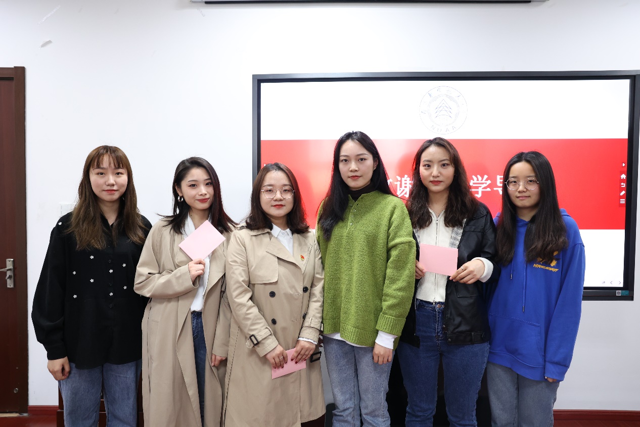 随后,本科生同学也为她们的党员学导们赠送了自己亲手制作的临别贺卡,感谢他们对自己的党员发展、日常生活、学业成长等方面的指导和帮助。