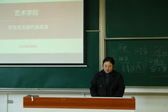 随后,广播电视艺术学学生党支部郭爱桦同学作为代表上台发言。她表示学生党支部应当做好自选动作,结合支部特色,积极参加党史学习教育。