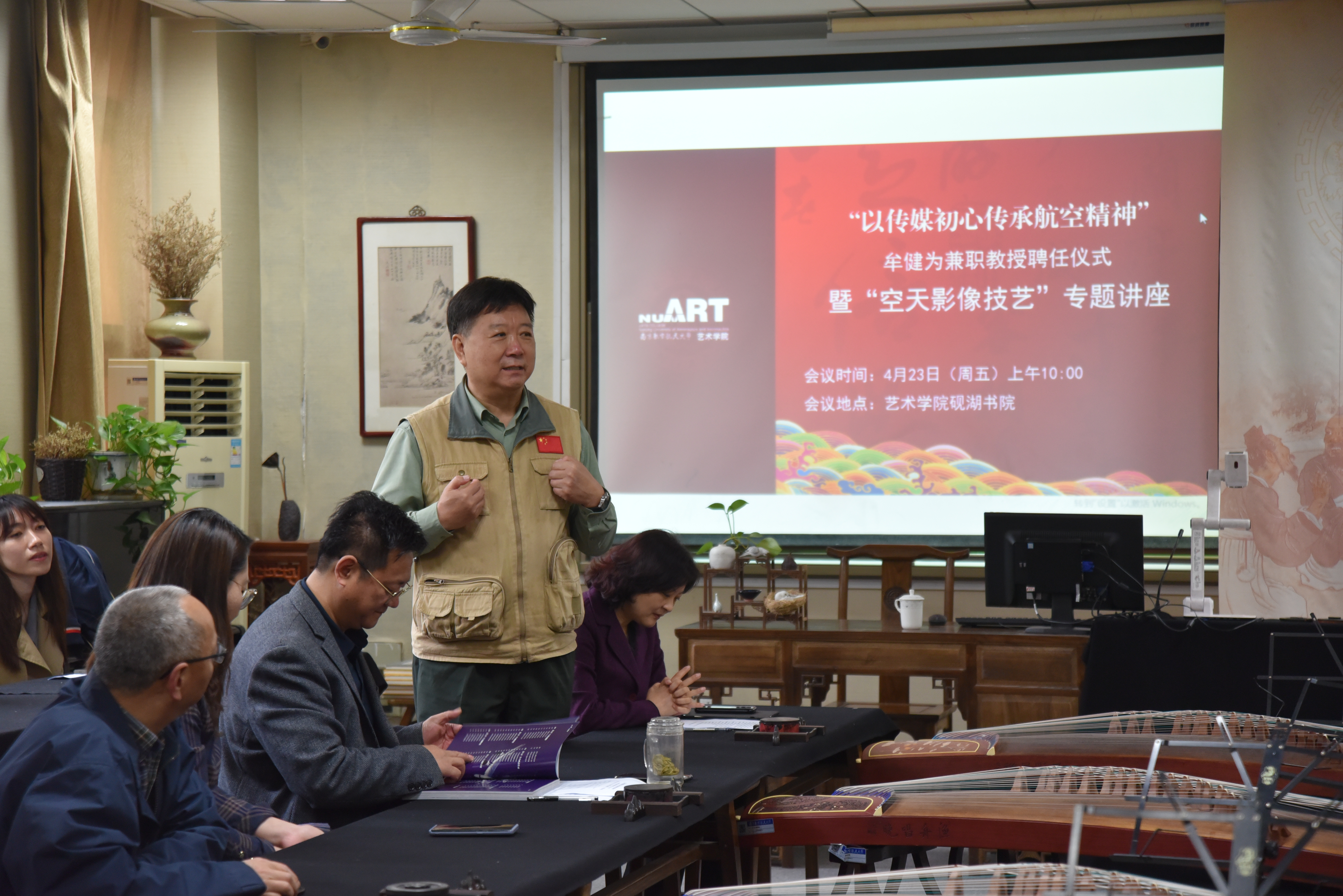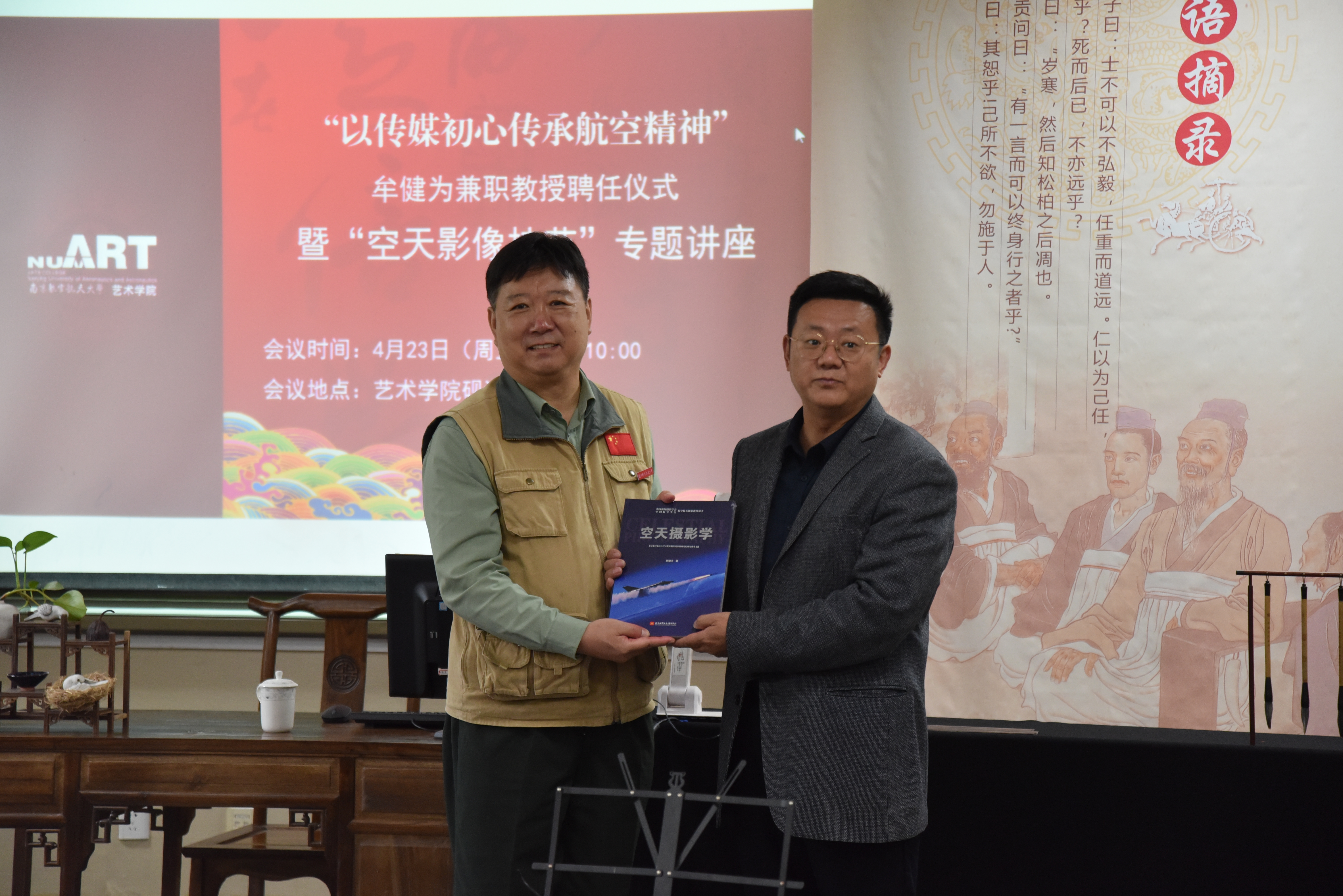 4月23日上午,“中国航天日”前一天,砚湖书院座无虚席,气氛热烈。德州扑克游戏 特邀北京航空航天大学影像研究院院长、中国军工记协影像专业委员会主任牟健为教授来院讲学,并为其举行了隆重的兼职教授聘任仪式。仪式结束后,牟教授结合党史教育,论述传媒初心传承航空精神,以“空天影像技艺”为主题,为师生们带来了一场精彩的关于航空航天影像拍摄的专题报告,并与师生进行了亲切交流。德州扑克游戏 全体班子成员、新闻传播学系教师和本科生研究生代表40多人参加了此次授聘仪式及报告会。会议由德州扑克游戏 党委主要负责同志张钟勤主持。