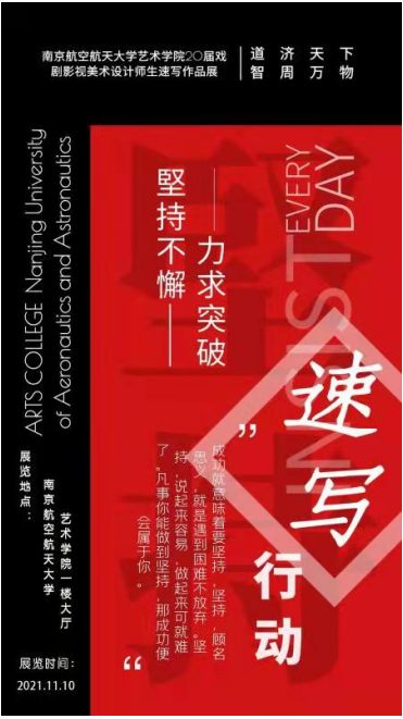2021年11月10日,2020届戏剧影视美术设计师生速写作品展在德州扑克游戏 一楼大厅展出。