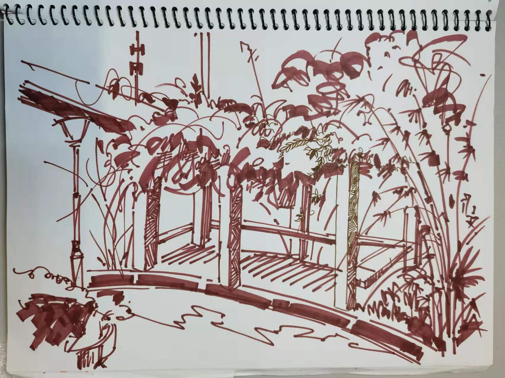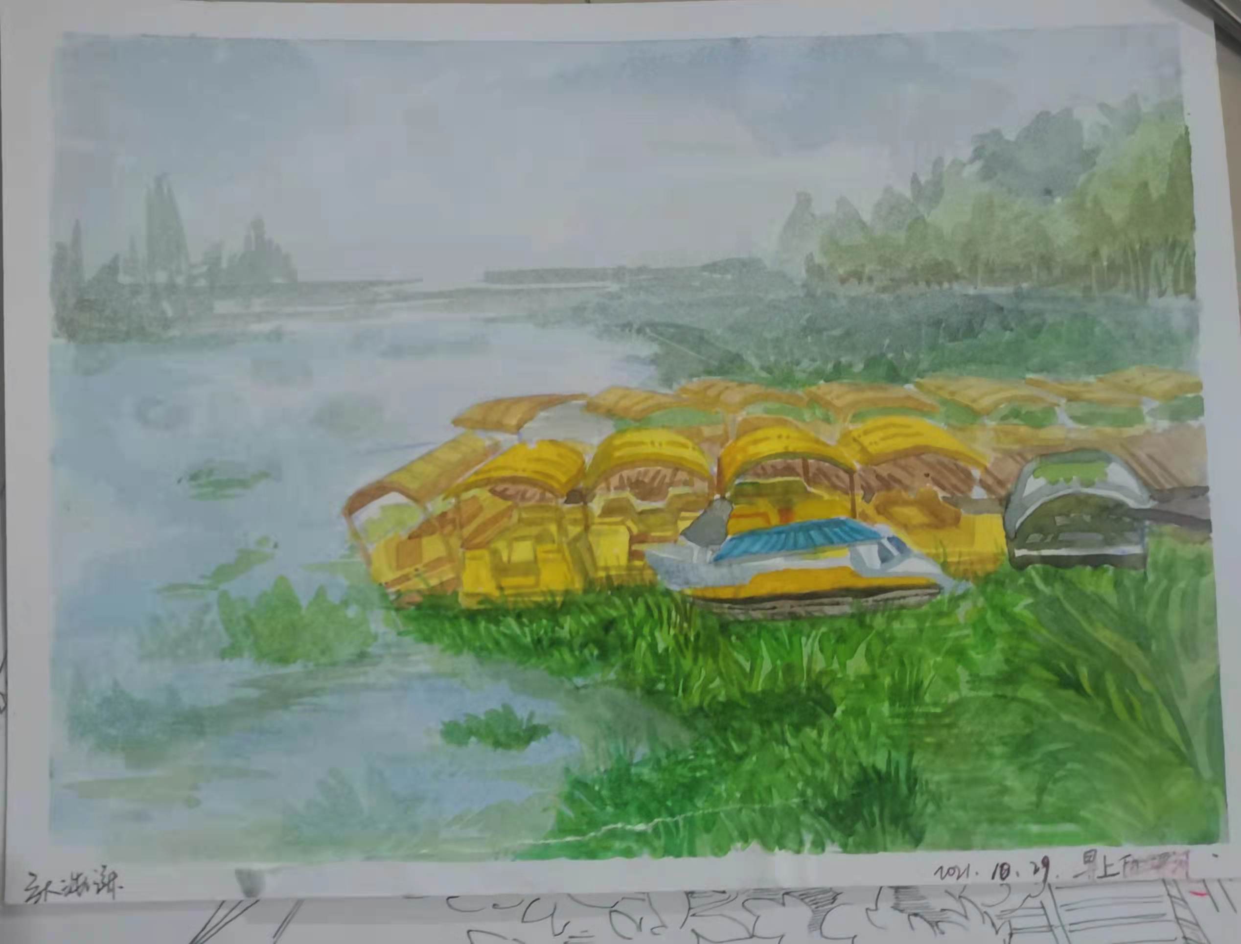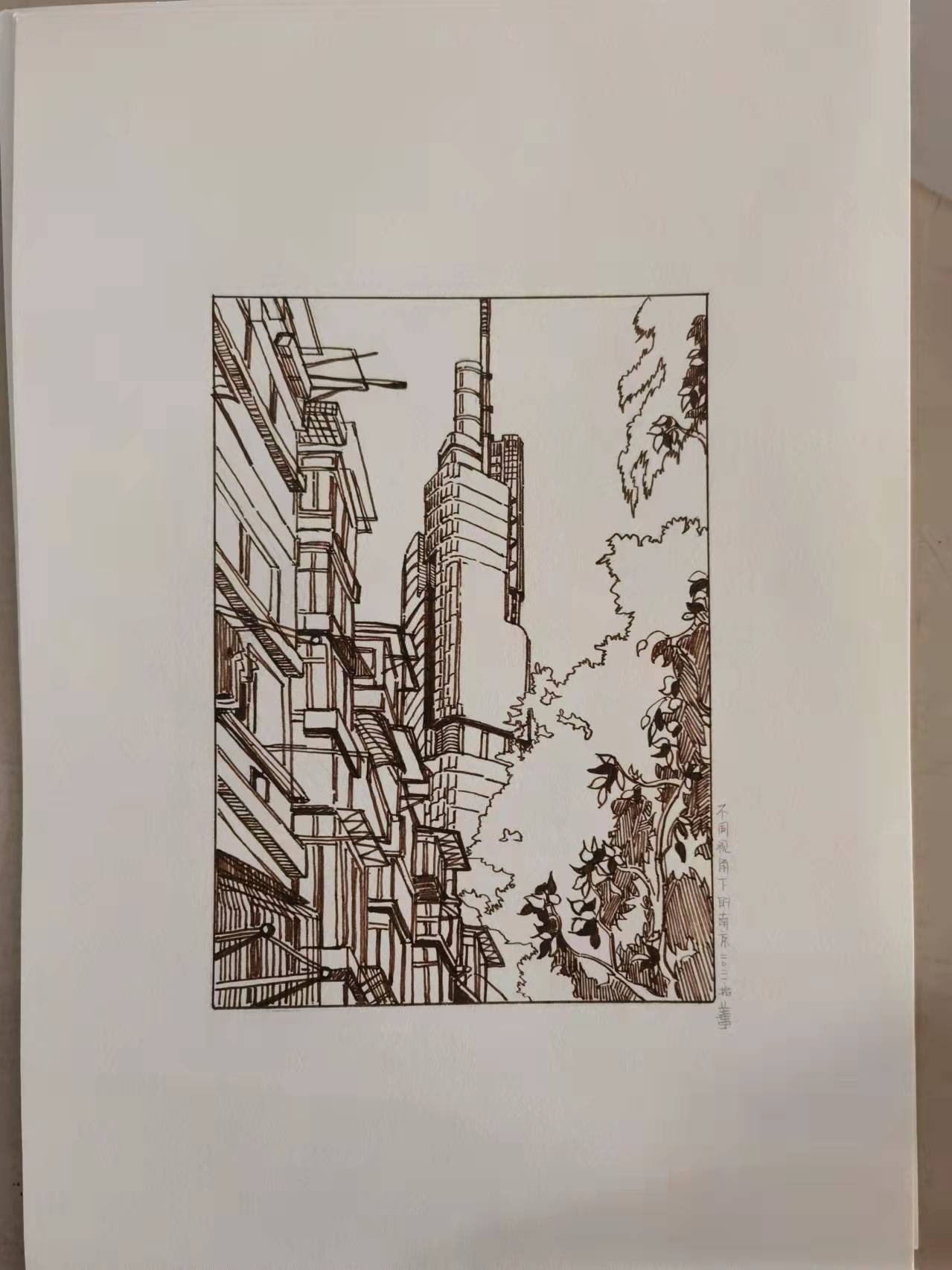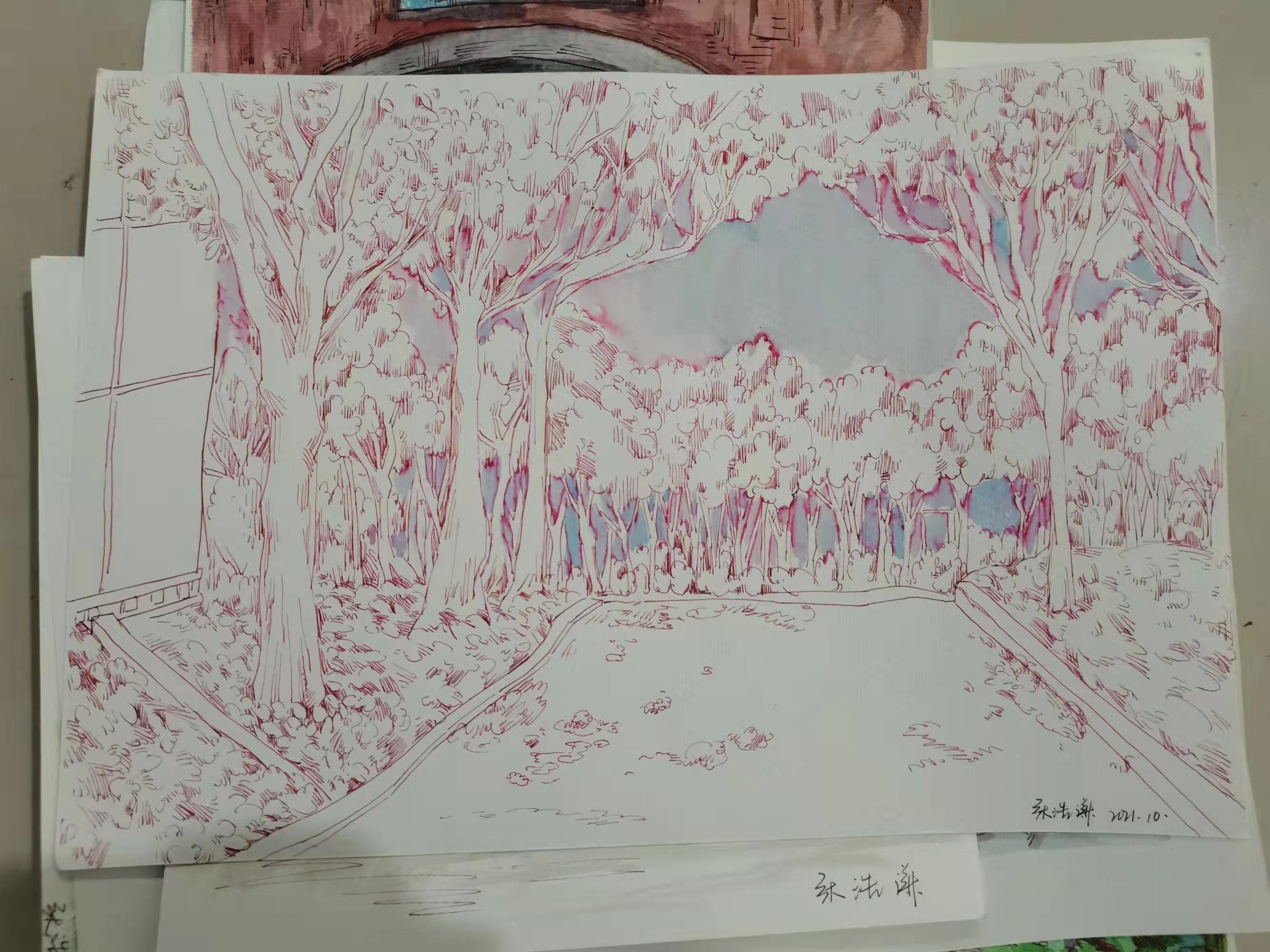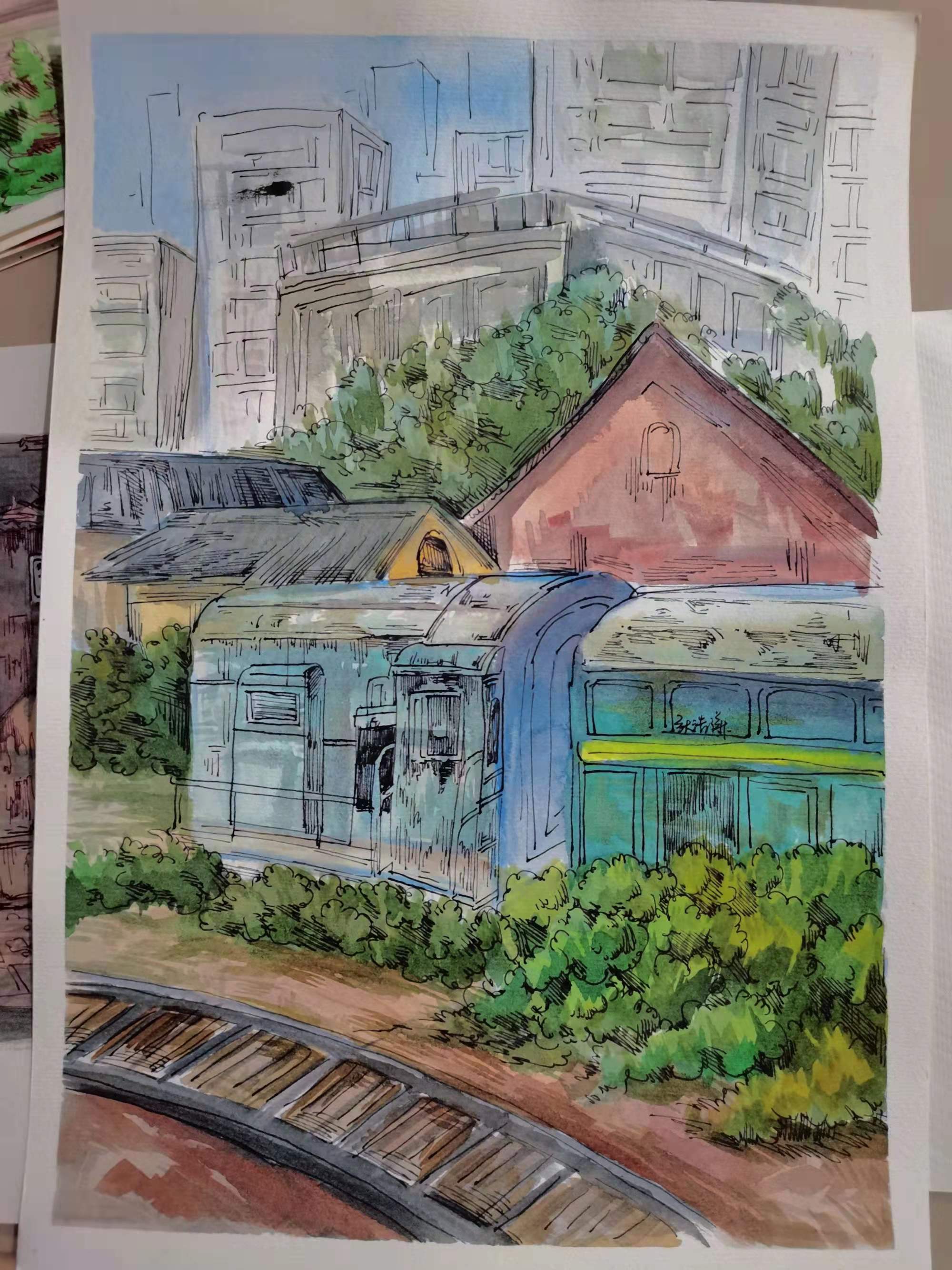 首先非常感谢王立庆老师热情积极的教学以及不同寻常的创新教学模式。引领着我们在速写课程上认识到了风景速写的重要性和多种展现和表达自己的可能性,并且展示了多种媒介。这次速写课程更多的拓宽了我的眼界,视线更多的向自然靠近,不仅仅局限于人物,更大限度的朝着风景靠近,从而体会其中的自然美。三个阶段的转变让我在速写这一领域无论是技能或者其他都变得更加成熟,更加从容,最终在布展中也更多的感受到了成就感和布展内容的排布。