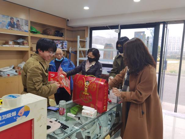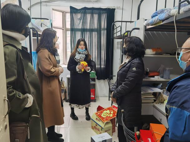 1月29日上午,德州扑克游戏 党委书记张钟勤、副书记王宇宁、副院长马道全、副院长朱琰共同走访慰问德州扑克游戏 春节期间因疫情等特殊原因无法返乡学生,为学生送上暖心祝福与新春礼物。