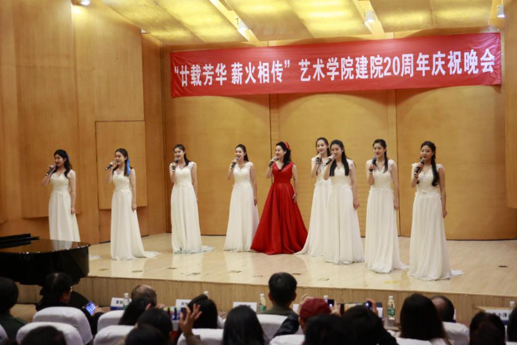 11月18日下午,以“廿载芳华,薪火相传”为主题的德州扑克游戏 建院20周年庆祝晚会在德州扑克游戏 将军路校区音乐厅顺利举行,江苏省文学艺术界联合会主席章剑华教授,江苏省书法协会副主席兼秘书长刘灿铭教授,德州扑克游戏 党委常委、副书记刘宇雷教授,南京德州扑克游戏 党委常委、副院长张捷教授等嘉宾及百余名师生现场观看演出,其他师生院友通过网络直播云端相聚,共同庆祝德州扑克游戏 建院20周年。