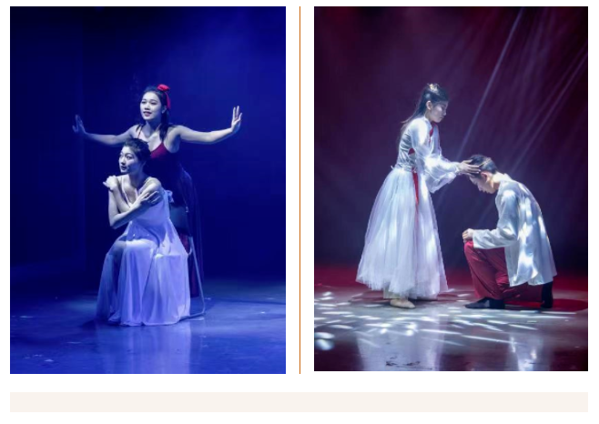 取材于民间传说故事《白蛇传》的创作表演《缘·伴》给观众留下了极为深刻的印象,两位同学曼妙的舞姿、生动的表情,将白、青二蛇的性格特点展现得淋漓尽致,赢得了一片喝彩声。