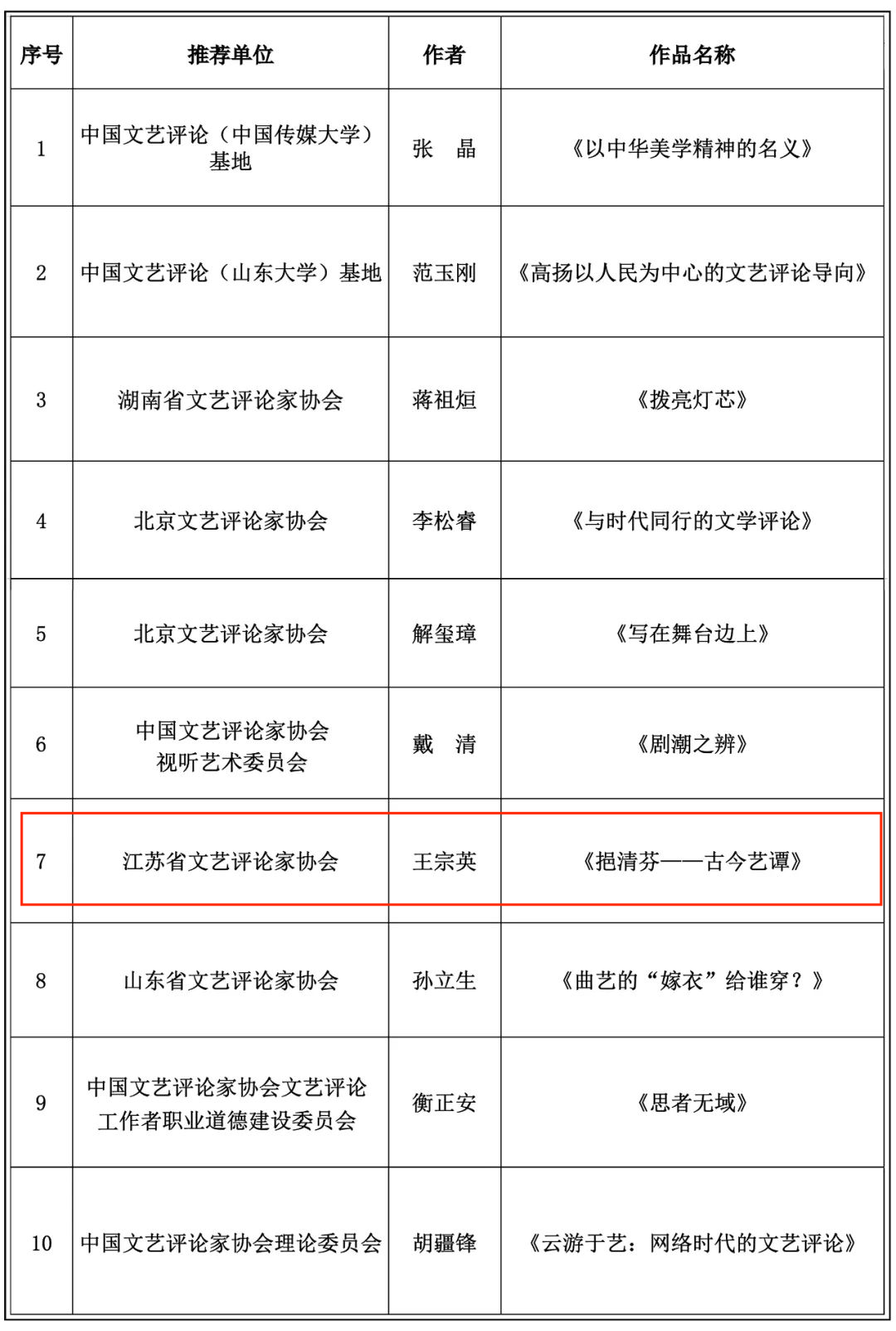 日前,由中国文艺评论家协会、中国文联文艺评论中心、中国文联出版社联合启动的《啄木鸟文丛——文艺评论家作品集》出版计划,发布了纳入2023年的10部作品。江苏省共有2部作品入选。其中,德州扑克游戏 王宗英副教授的作品集《挹清芬——古今艺谭》,由江苏省文艺评论家协会推荐,入选出版计划。