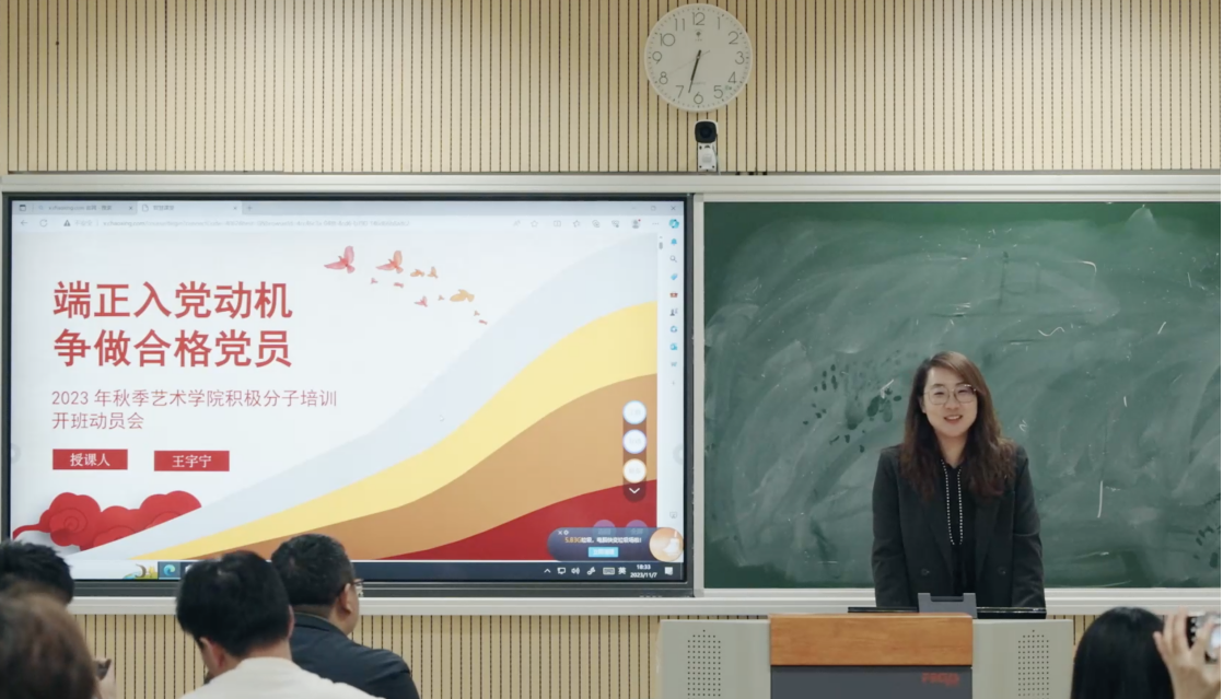 “我为什么要加入共产党?”王宇宁指出,入党动机不应该单纯地跟某个人联系在一起,而是要从党史中思考,在党史中寻找答案。王宇宁带领同学们回顾百年党史,引导积极分子坚定入党信仰,端正入党动机。让大家认识到,是历史和人民选择了中国共产党,要成为合格的党员,首先要从思想上入党,坚定信仰。她鼓励同学们要经受住考验,加强理论学习、在实践中淬炼成长、争当表率、不断在思想上和组织上向党组织靠拢,争做一名合格的共产党员,践行党员的初心和使命。