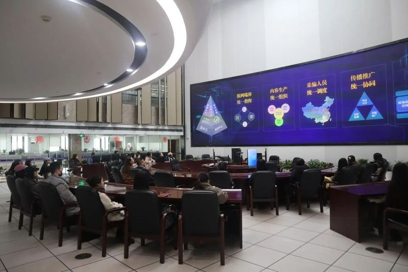 党日活动第一站是参观新华报业集团全媒体指挥中心。老师、同学们在集团相关负责人的解说下,对全媒体指挥中心及相关功能和技术有了更详细、深入的了解和认识。党日活动第二站是赴《新华日报》报史馆参观学习,了解诞生于烽火之中的《新华日报》的办报历史,学习潘梓年、华岗、吴克坚等优秀的新闻工作者的先进事迹,致敬新闻先辈。